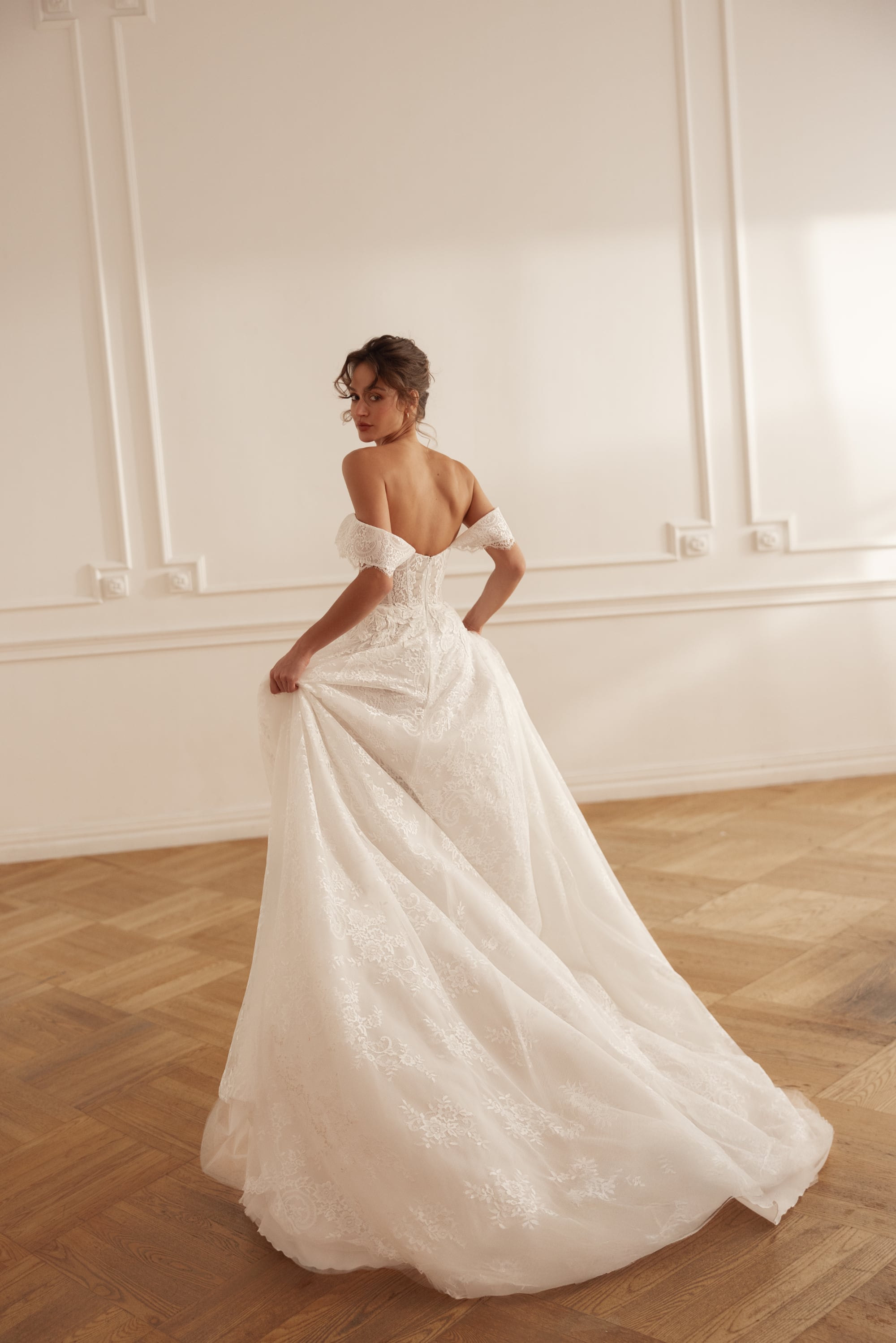 L’abito da sposa Calm esprime il pizzo nella sua forma piu raffinata.